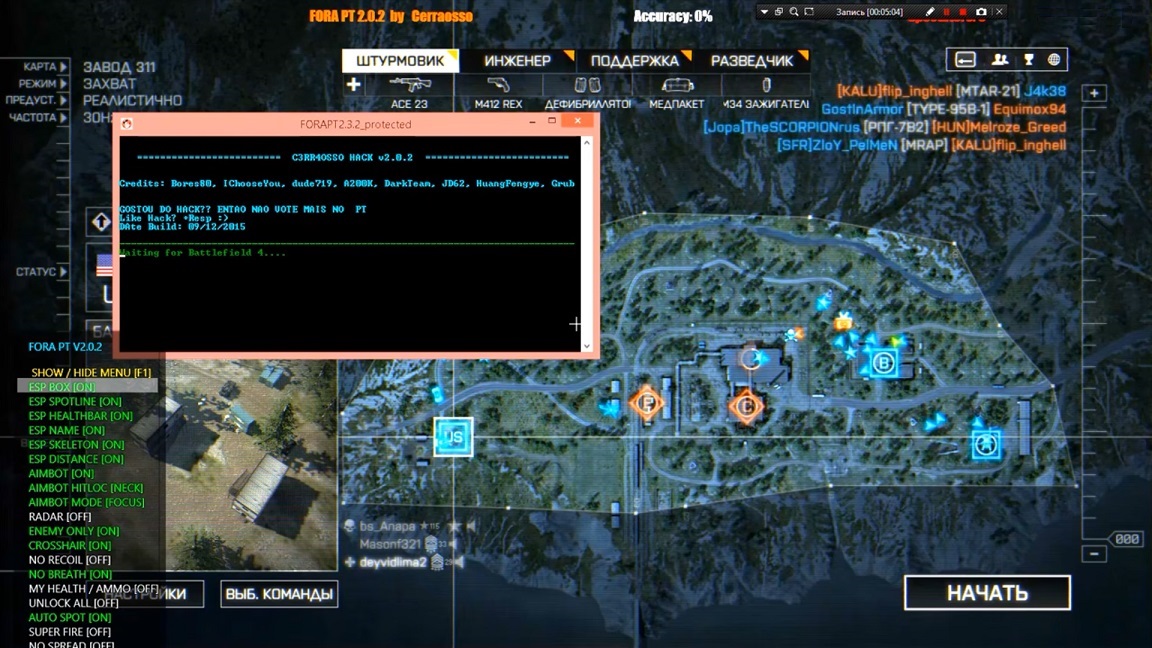 Читов и трейнеров на батлу не так много и, чтобы не скидывать все файлы в один раздел, помимо Battlefield 3, была создана отдельная страница с различным софтом к четвёртой части Батлфид. Тут Вы найдёте для себя много новых, рабочих трейнеров, разнообразных мульхаков и соло читов. Находящиеся ниже читы на Battlefield 4 2018 года проходят проверку на VirusTotal и, только после положительного результата, появляются у нес в отдельных темах. Но не стоит забывать о банах аккаунтов от админов, поэтому используйте выложенные программы очень осторожно и не светитесь лишний раз.
