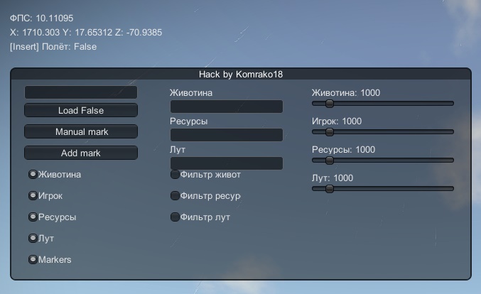- Радар с настройками показа животных, ресурсов и людей, находящихся поблизости